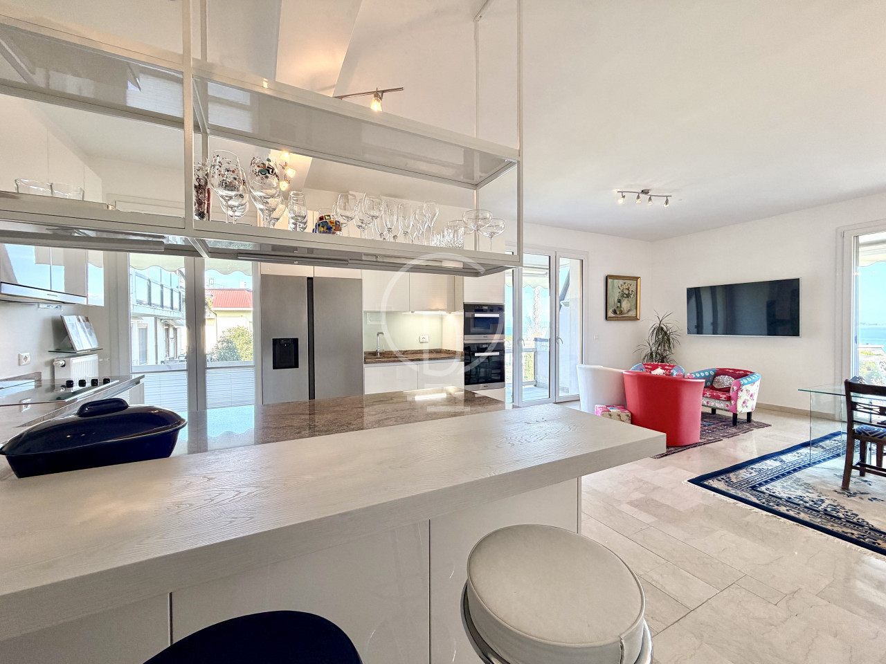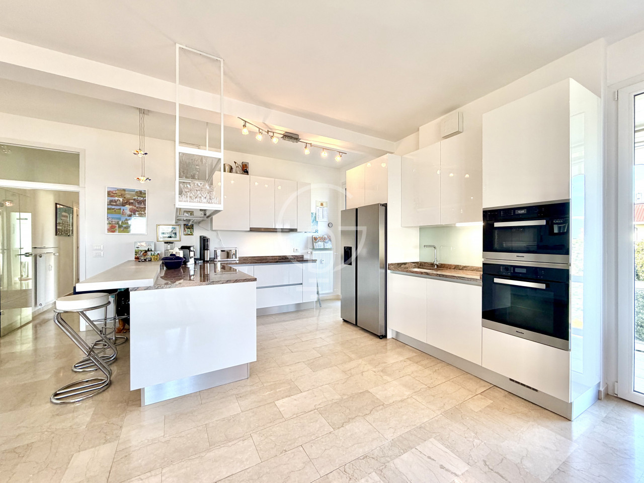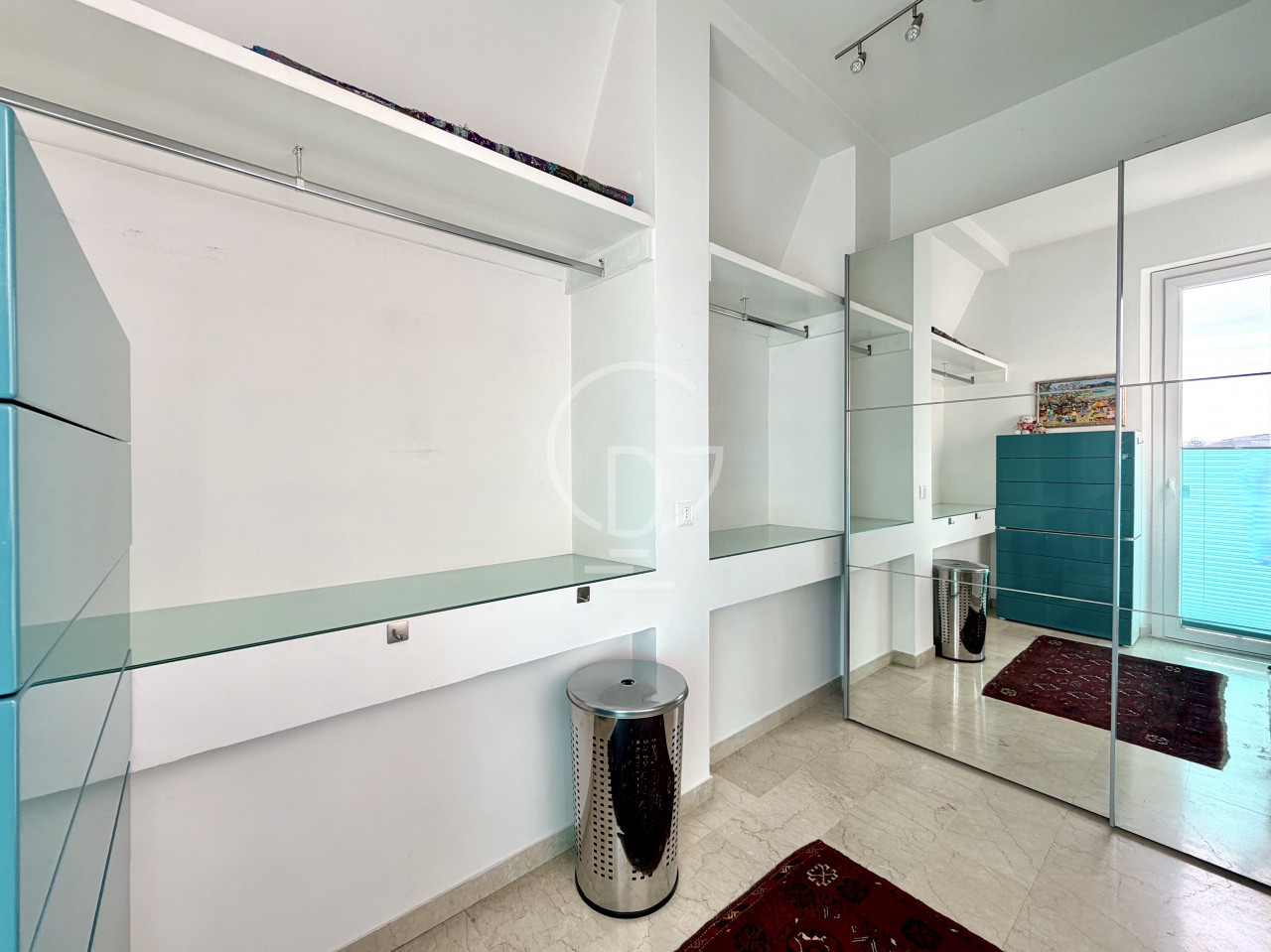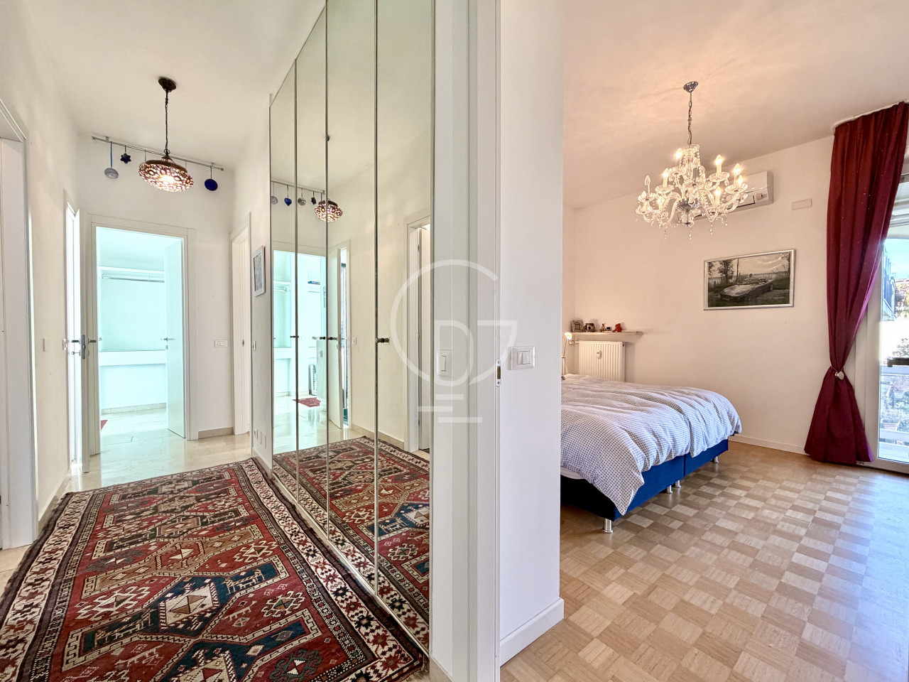 Die Wohnung befindet sich im obersten Stockwerk und besticht durch ihre großzügigen Räume und funktionale Aufteilung, ideal für Familien oder alle, die das Leben am See das ganze Jahr über genießen möchten. Das Stadtzentrum und die wichtigsten Einrichtungen sind bequem zu Fuß erreichbar. Der Eingangsbereich öffnet sich zu einem großen offenen Wohn- und Essbereich mit moderner Küche, einem einladenden und hellen Raum, der durch zwei große französische Türen mit herrlichem Seeblick ergänzt wird und Zugang zu zwei Panoramaterrassen bietet – perfekt für Entspannung oder gesellige Stunden im Freien.