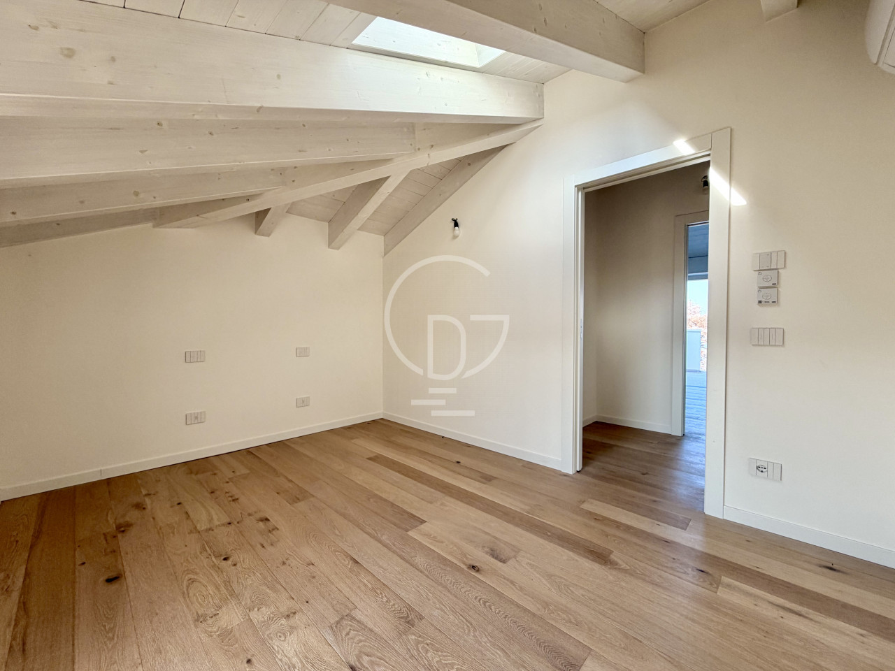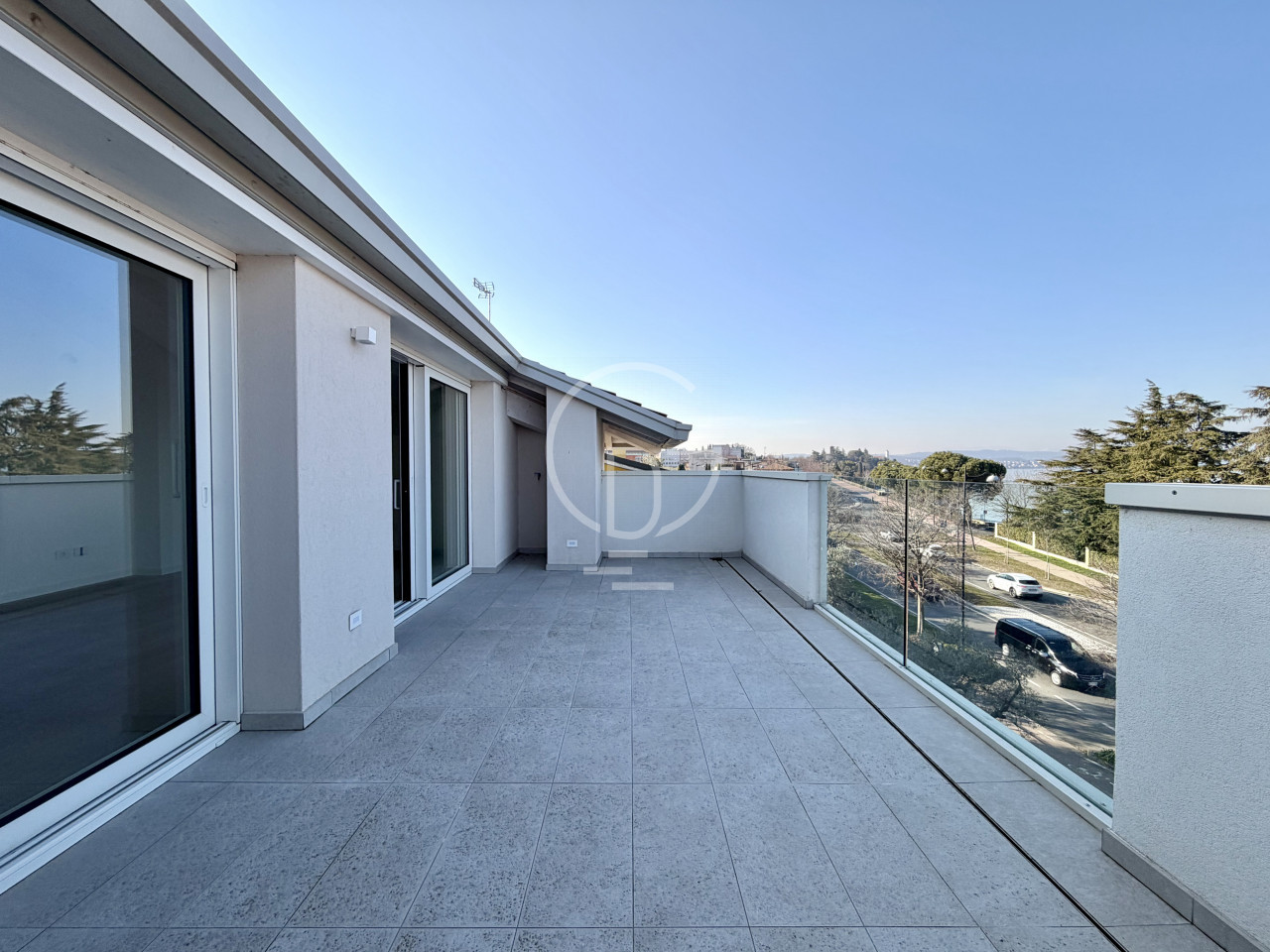 A Rivoltella, in posizione comoda a tutti i principali servizi, alle passeggiate sul lungolago e alle spiagge, proponiamo attico con vista lago inserito in un residence di recente costruzione, composto da poche unità e dotato di piscina.