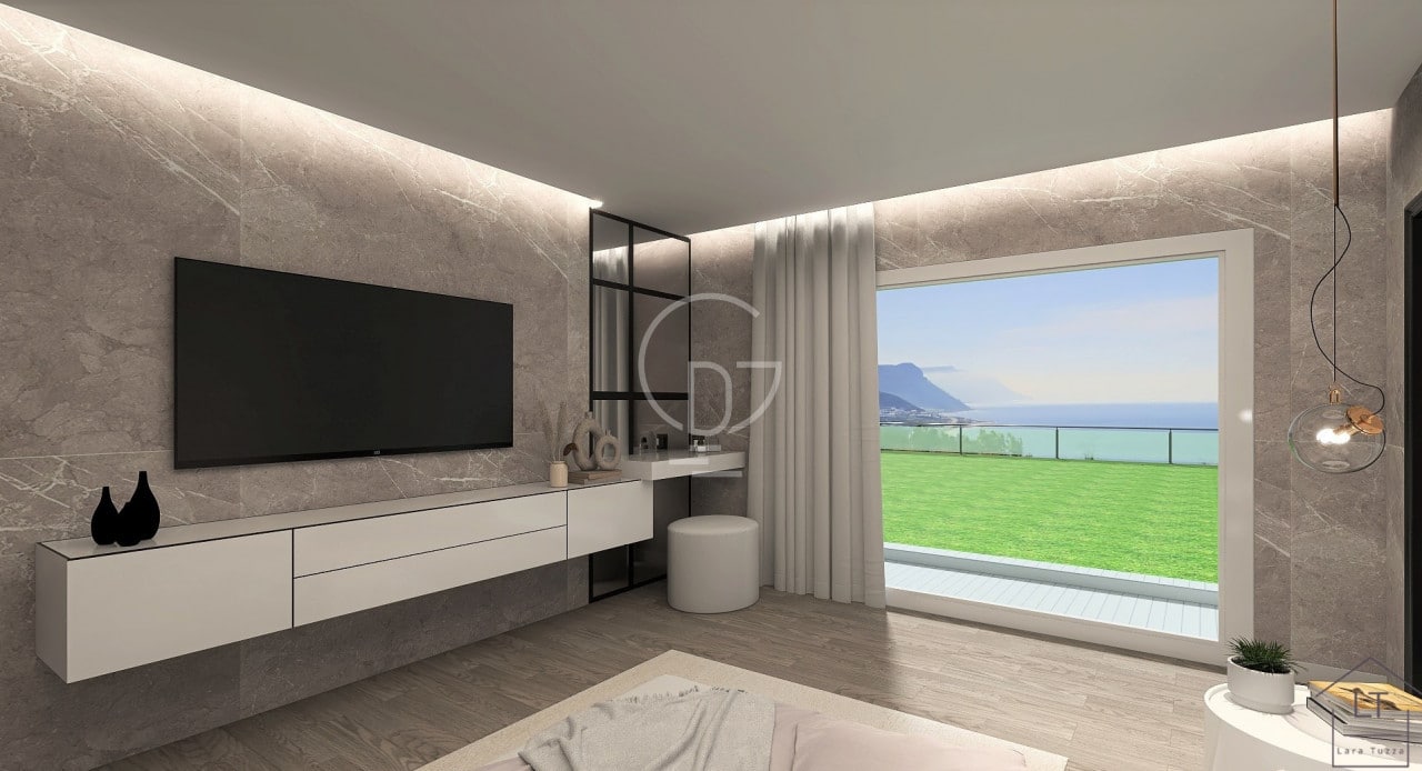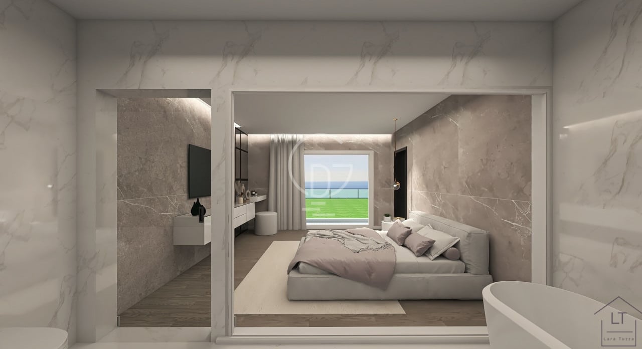 Tramite ascensore o scala si sale al piano terra della Villa, piano interamente dedicato a una grande zona giorno di circa 100 mq caratterizzata da ampie vetrate scorrevoli in grado di dar luminosità alla zona living e godersi il panorama della vista lago totale, le vetrate consentono di accedere alla parte esterna della Villa composta da portico coperto e piscina di ultima generazione a sfioro, anch’essa vista Lago. Sempre allo stesso piano, per comodità, verrà realizzata una camera matrimoniale con cabina armadio integrata ad essa, concludendo infine con altri due bagni completi al piano terra.
